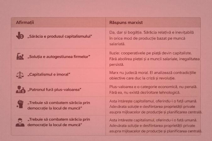 Articolul spune, în esență: „Capitalismul creează sărăcie pentru că patronii fură plus-valoarea. Soluția: democratizarea locului de muncă.”… Continuare